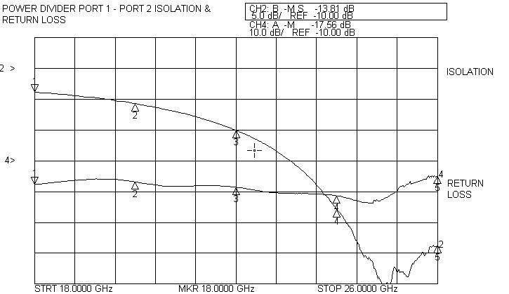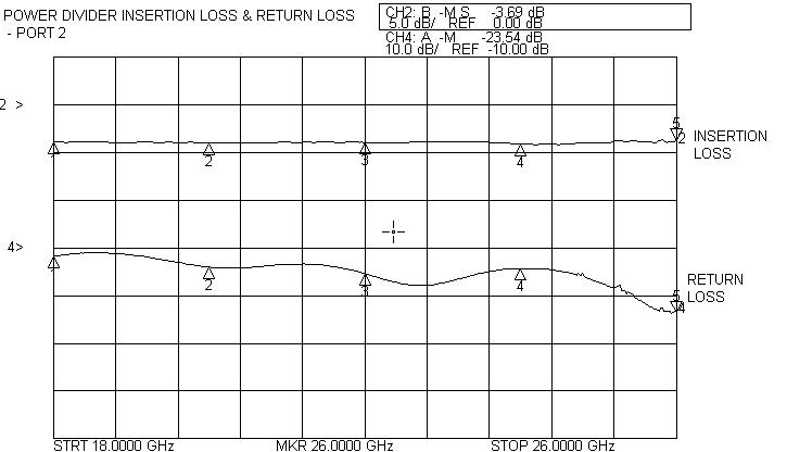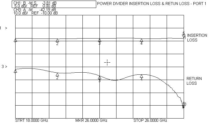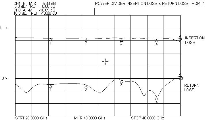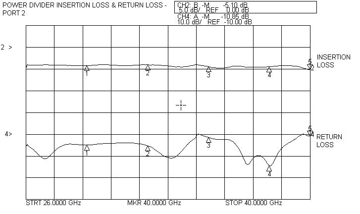 Akon ultra-compact Power Dividers operate over the 18 – 26 GHz and 26 – 40 GHz bands. They provide low excess insertion loss and good port to port isolation. Performance of actual units shown on the right.