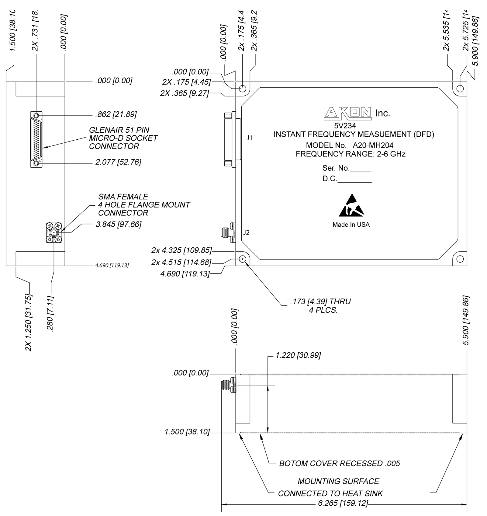 AKON is a leading manufacturer of RF/microwave components and subsystems for military, space and commercial applications. AKON’s product line includes high reliability, custom integrated microwave assemblies, DFD receivers, microwave receiver front-ends, RF switching matrices, frequency synthesizers, custom LO assemblies, frequency converters, RF switches, digitally controlled attenuators, miniature RF filters and switches, and microwave amplifiers covering 2.0 - 18.0 GHz frequency range (up to 40.0 GHz for some applications). AKON is qualified to MIL-I-45208 Quality System Requirements by agencies of the U.S. Department of Defense and by leading foreign and domestic military OEMs. All specifications are valid over the full operating temperature unless otherwise indicated.