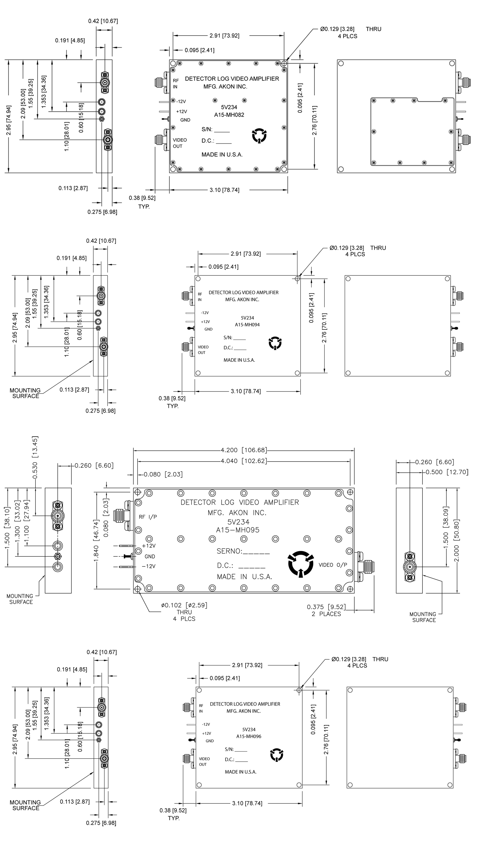 | Power Supply Current (mA) -12 (VDC) | +150 | -150 | -150 | -150 |