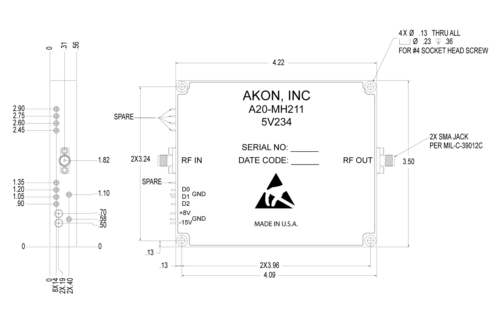 AKON produces miniature filterbanks and switch filter banks in the 2.0 - 18.0GHz range. Filters, amplifiers, attenuators,and equalizers are put together using MMIC techniques. Filter designs vary from lumped element to cavity or suspended substratetype, depending upon the requirements. Switches are taken from AKON’s comprehensive product line of RF/microwave solid-state switches incorporating both PIN-diode and MMIC switching technologies. Multiple switches in a common package are phase and gain matched. AKON’s switch speed is typically 50 nS or less, amongst the lowest loss in the industry. The units can be tailored for specific customer requirements.