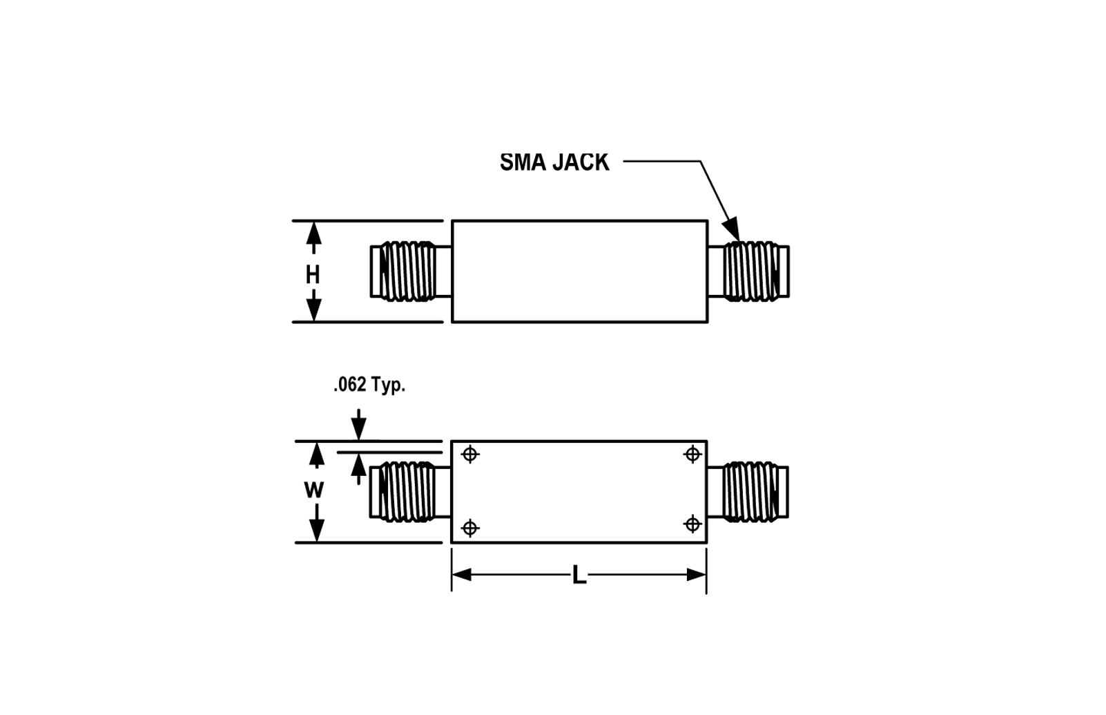 | A65-MH064 | 14.5-15.6 | 1.5 | 60 dB (DC to 13.5) | 60 dB (16.5 to 24.0) | 1.5:1 | 2.2 x 0.4 x 0.5 | |||||