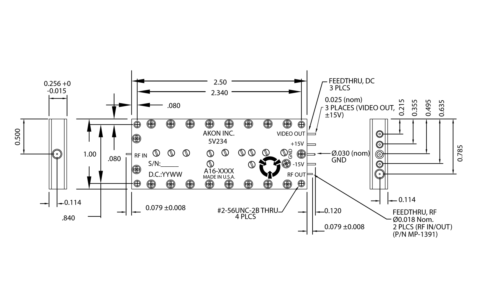 Reliability is a key feature of AKON products and to ensure this we perform ESS testing on all of our products. AKON offers an off-the-shelf screening option called its “H“ series, per Mil-STD-883 level B that is available on all of its RF & Microwave Components. For custom electrical, mechanical, and screening options, please contact AKON Sales: sales@akoninc.com (or) 408-432-8039.
