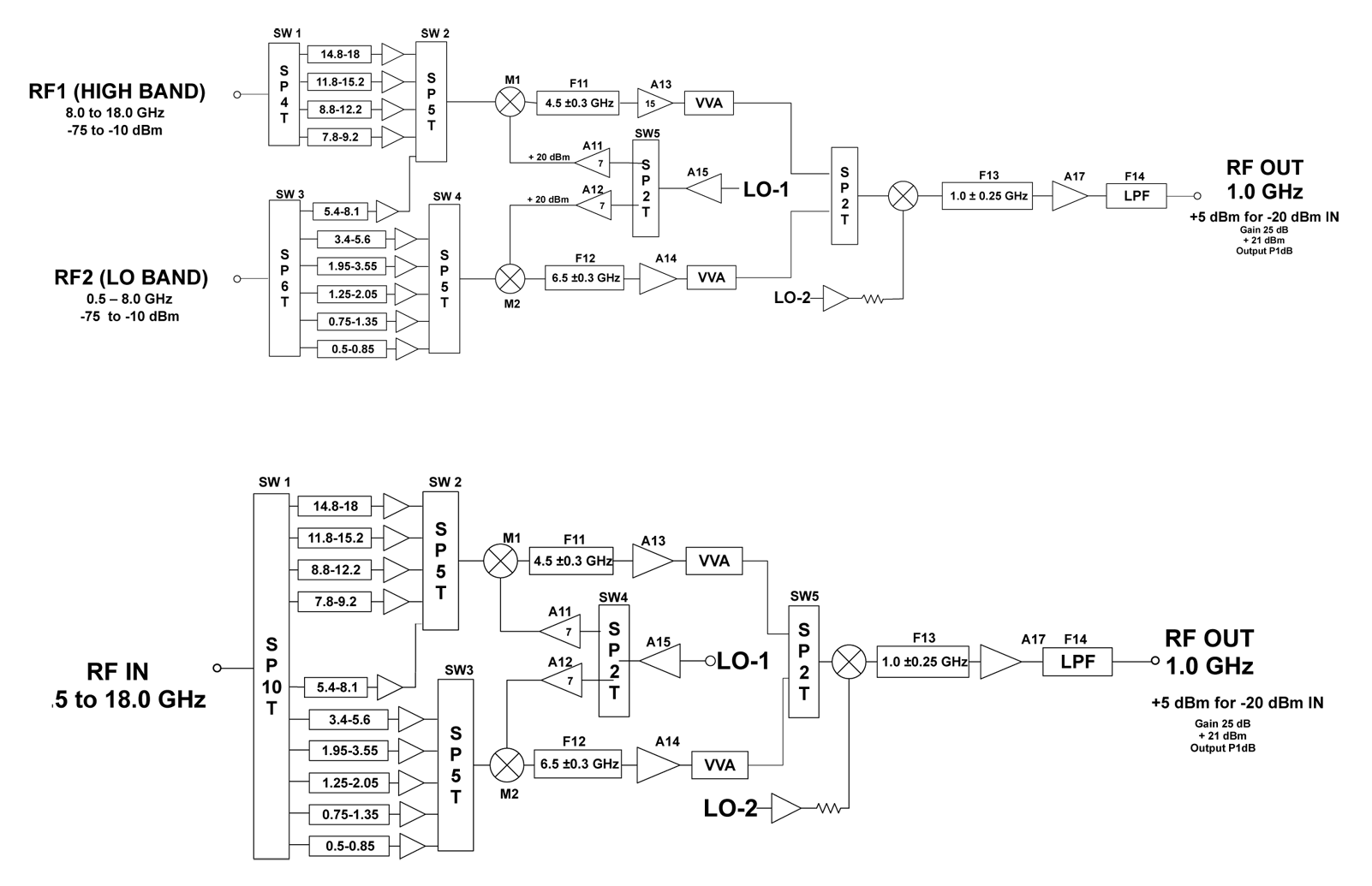 | Noise Figure (dB) | 10 (nom); 11 max (below 8 GHz) 11 (nom); 12 max (above 8 GHz) |